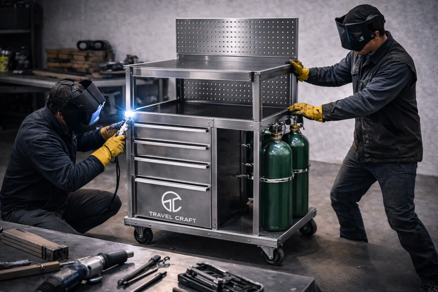 TravelCraft is a modern fabrication studio specializing in laser-welded solutions for travel, work, and utility. We combine advanced handheld laser welding technology with precision design to build custom trailers, welding carts, van conversions, and one-of-a-kind metal projects.